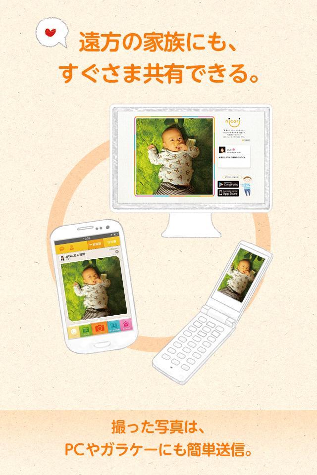 « nicori » - это приложение для обмена вашими частными фотографиями, направленным на укрепление связей среди вашей семьи благодаря росту вашего ребенка.
