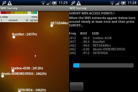 Визуальный опрос Wi -Fi, чтобы показать приблизительное местоположение точек доступа Wi -Fi вблизи вашего телефона, а также частоту и диапазон работы.