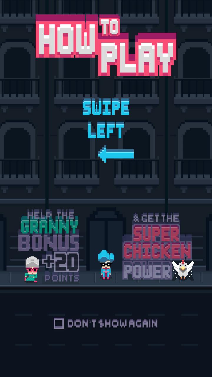 Получите веселье, когда вы пытаетесь безопасно пересечь улицу. Помогите бабушке и получить бонусные баллы. И, конечно же, убедитесь, что вы получите супер куриные способности!