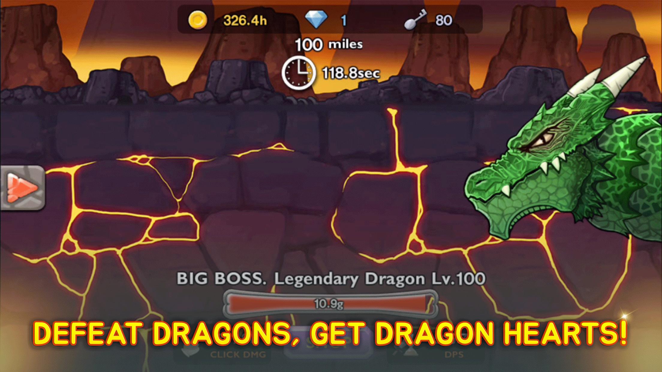 *Нажмите, чтобы победить драконов и собрать их сердца для повышения.