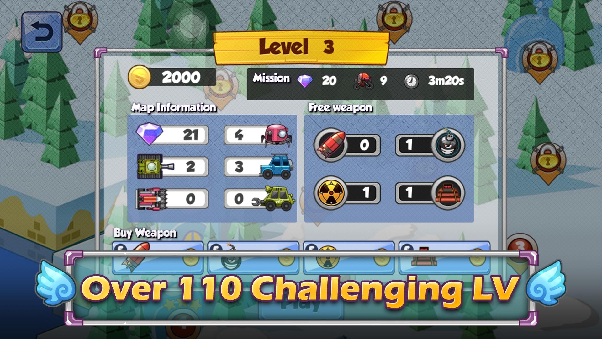 - Разнообразие видов оружия и навыков, включая шахты, ракета, бомба таймера, замороженные.