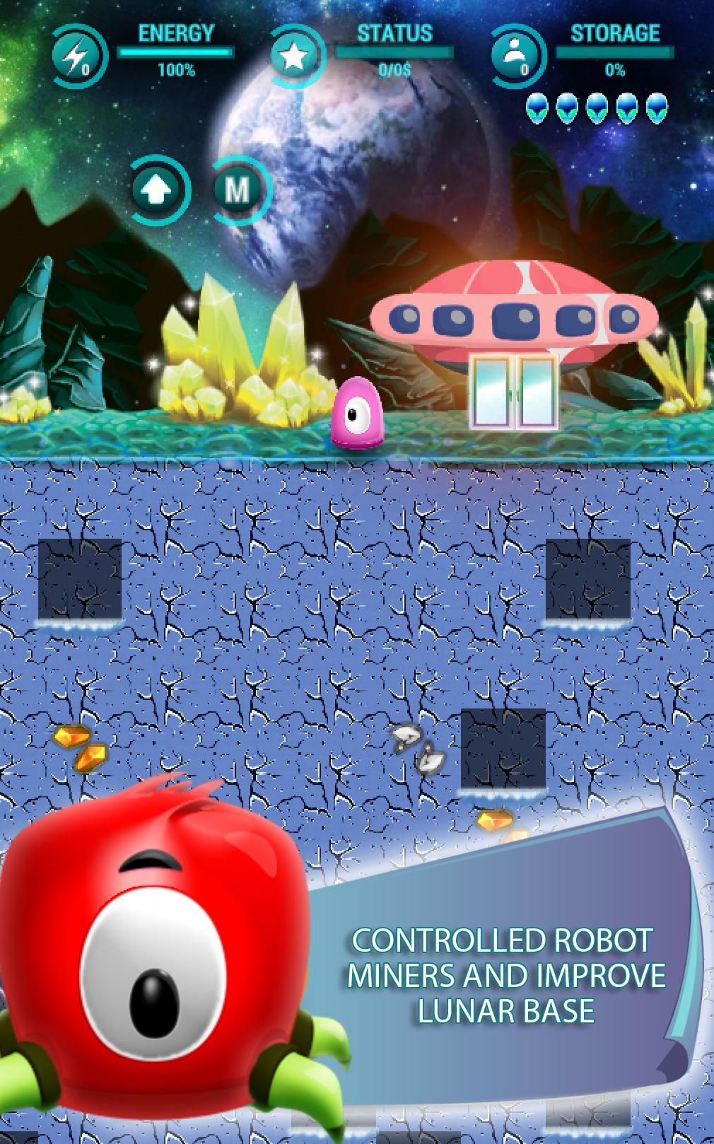 2016. Землянинг делятся ресурсами на своей планете, инопланетяне тем временем экстрактные минералы на Луне. Быть одним из шахтеров минеральных ресурсов, связанных с аватаром и извлекать минералы. Построить жилье в лунных кратерах, обгонять конкурентов, изучать майнеров. Извлекать минералы, это искусство, особенно в космосе, где оно может быть враждебным по отношению к каждому участку земли. Продайте добытые ресурсы и обновление, Robot Digger. Чтобы быть доступным для новой шахты, найдите все скрытые хрустальные черепа в кратере Луны.