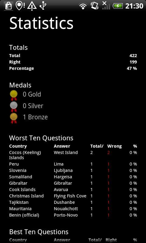 * Режим обучения - тренируйтесь, сосредоточившись на столицах, в которых вы не так хороши