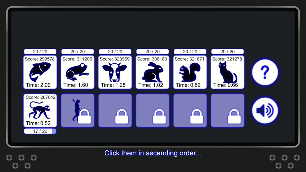 Очень простая игра на запоминание. Смотрите цифры на экране и пробуйте нажимать их в порядке возрастания.