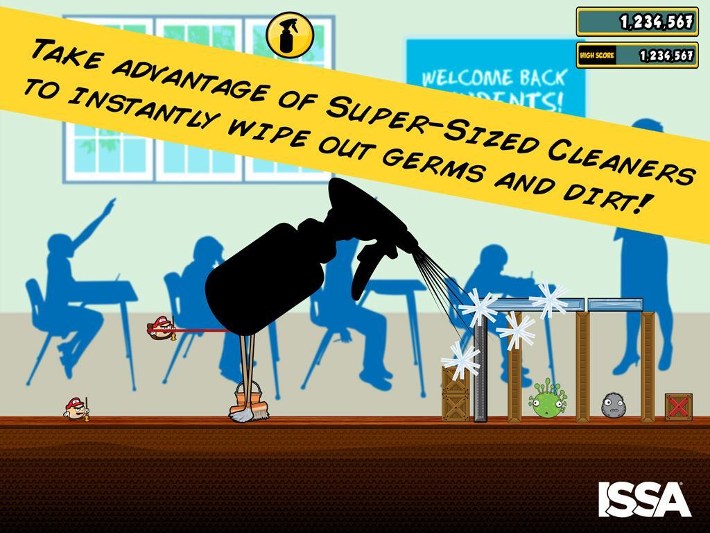 Если конкретная задача по очистке является слишком коварной, и вы застряли на уровне, воспользуйтесь преимуществами супер-больших чистящих средств, чтобы мгновенно уничтожить оставшиеся микробы и грязь и перейти на следующий уровень. Дополнительные сверхразмерные чистящие средства доступны в виде покупок в приложении.