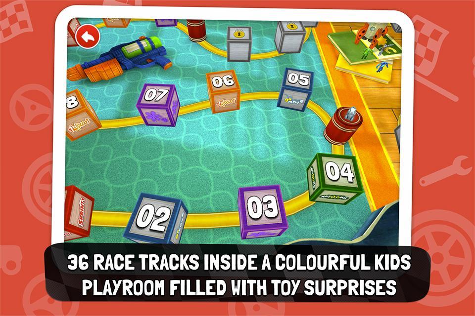Игроки могут выбирать и управлять своими любимыми автомобилями сюрприза игрушек в 36 красочных треках. Они должны собирать звезд вдоль гонки и быстро двигаться, чтобы стать чемпионом, открыть больше треков и еще более захватывающие автомобили.