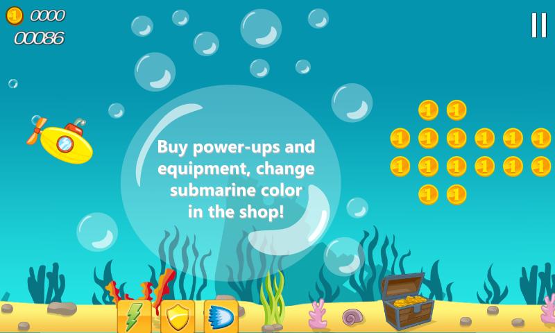 В магазине вы можете изменить цвет своей подводной лодки, так что возьмите как можно больше монет!