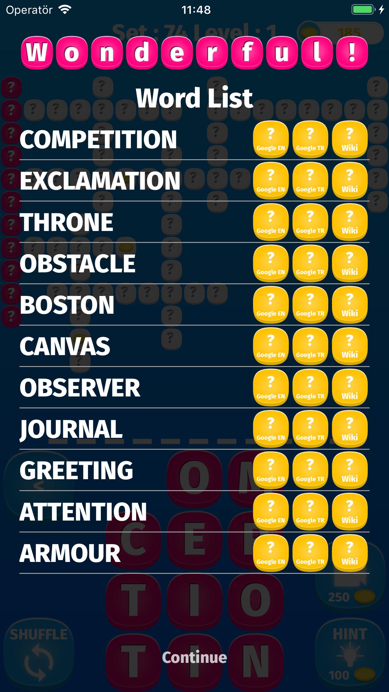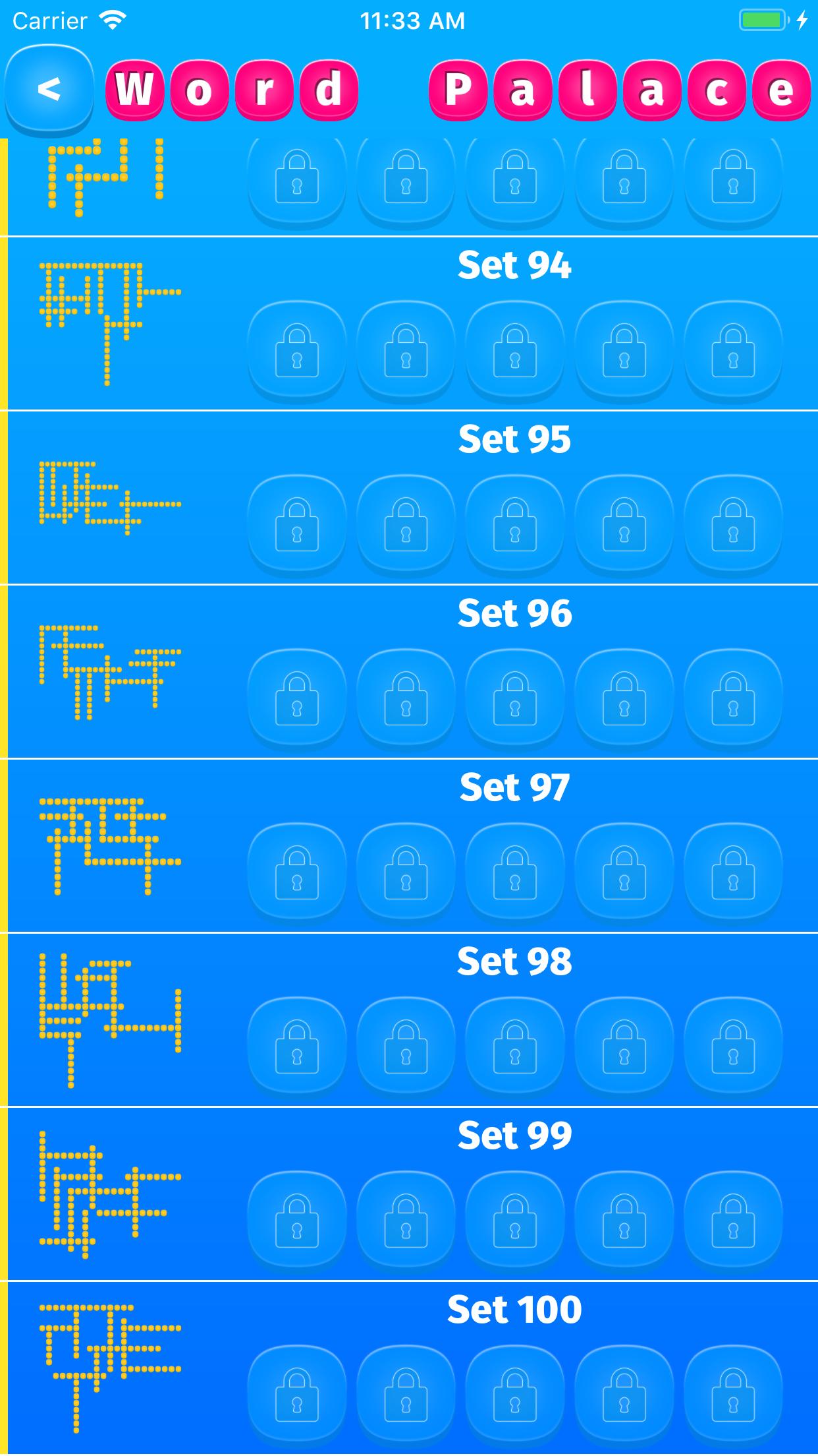 - Сложность увеличивается наряду с уровнями (количество букв и использование в ежедневной речи)