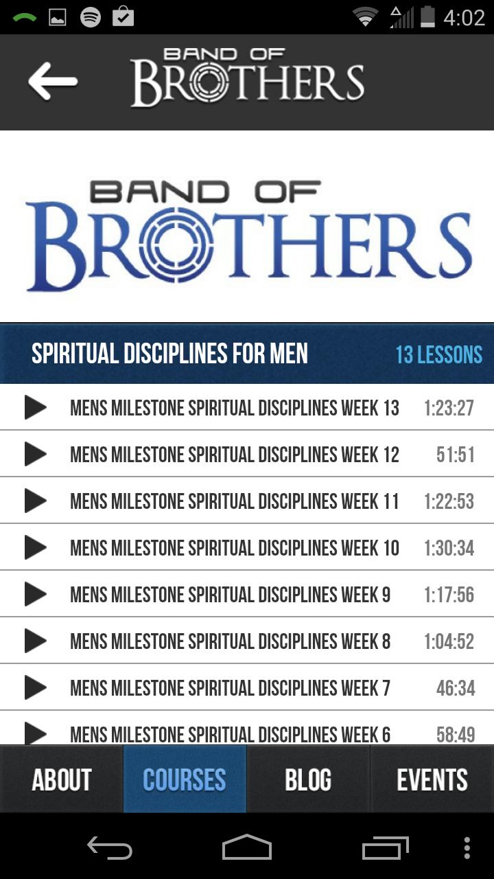 แอพนี้ให้ข้อมูลเกี่ยวกับ " Band of Brothers " คริสตจักรแบ๊บติสต์แห่งแรกของฮูสตันรวมถึงพอดคาสต์บล็อกกิจกรรมที่จะเกิดขึ้นและอื่น ๆ คุณยังสามารถส่งเสริมการศึกษาและกิจกรรมผ่านโซเชียลมีเดียด้วยการกดปุ่มเพียงปุ่มเดียว