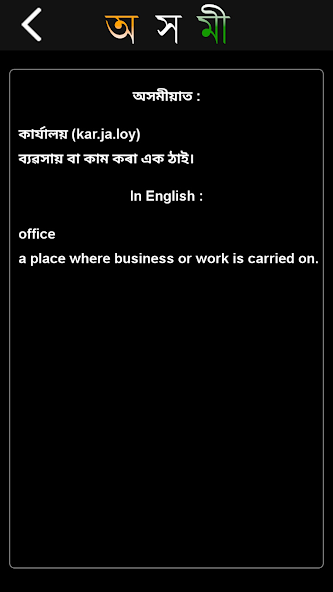 เกือบทุกภาษามีแอพพจนานุกรมในทุกแพลตฟอร์มวันนี้ อย่างไรก็ตามอัสสัมเป็นภาษาเดียวที่ไม่มีแอพพจนานุกรม นี่เป็นแอพพจนานุกรมภาษาอังกฤษ-Assamese ครั้งแรกซึ่งเป็นส่วนหนึ่งของบ้านเกิดของเราสถานที่ที่มีความหลากหลายและเป็นศูนย์กลางของหลายวัฒนธรรม แม้ว่าจะมีหลายภาษาที่พูดในภูมิภาค แต่ที่พบมากที่สุดคืออัสสัม