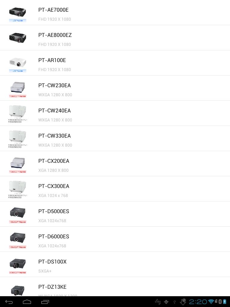 แคตตาล็อกโปรเจคเตอร์ ส่วนนี้แสดงโปรเจคเตอร์ปัจจุบันทั้งหมด รายละเอียดเกี่ยวกับโปรเจ็คเตอร์สามารถทำได้โดยการสัมผัสแบบจำลองที่ต้องการ