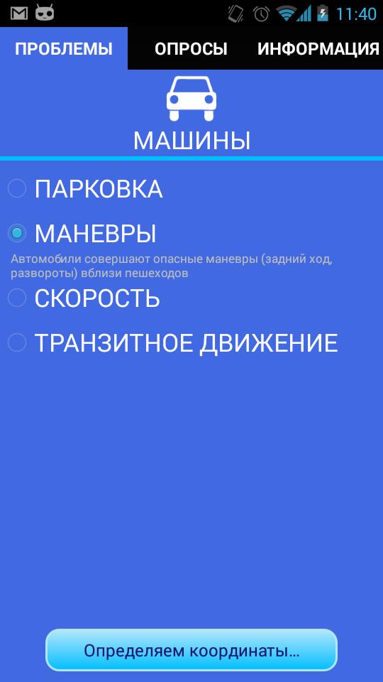 เพียงเริ่มแอปพลิเคชันและรอจนกว่าตำแหน่งของคุณจะถูกกำหนดบนแผนที่จากนั้นเลือกประเภทของปัญหาในการคลิกสองครั้งและส่งข้อมูลไปยังศูนย์ประมวลผล Идите далее по маршруту и отмечайте все опасные места.