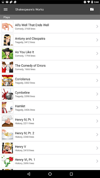 •อ่านผลงานที่สมบูรณ์แอปมี 41 บทละคร 154 บทกวีและบทกวี 6 บทรวมถึง Apocrypha