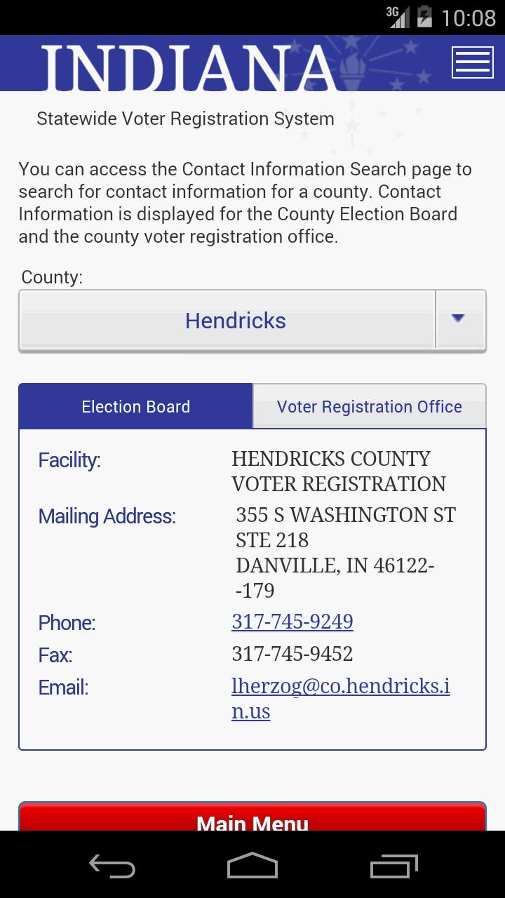 นอกจากนี้แอพมือถือผู้มีสิทธิเลือกตั้งผู้มีสิทธิเลือกตั้งของรัฐอินเดียนาช่วยให้คุณค้นหาข้อมูลการลงทะเบียนผู้มีสิทธิเลือกตั้งเช่นยืนยันการลงทะเบียนผู้มีสิทธิเลือกตั้งของคุณค้นหาสถานที่เลือกตั้งที่ใกล้ที่สุดของคุณด้วยทิศทางการขับขี่การดูผู้สมัครและคำถามที่จะปรากฏบนบัตรลงคะแนนของคุณและตรวจสอบสถานะของบัตรลงคะแนนชั่วคราวหรือขาด
