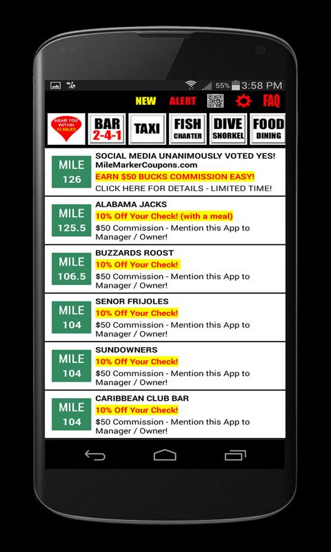 แอพคูปอง Florida Keys ฟรีเพียงอย่างเดียวที่คุณจะเป็นเจ้าของ! นอกจากนี้ยังทำให้เครื่องดื่มพิเศษ 2-4-1 เครื่องดื่มที่ดีที่สุดใน Florida Keys! โทรศัพท์ของคุณจะแจ้งให้คุณทราบเมื่อคุณใกล้กับข้อตกลง! ส่งเสริมธุรกิจคีย์ท้องถิ่นเท่านั้น