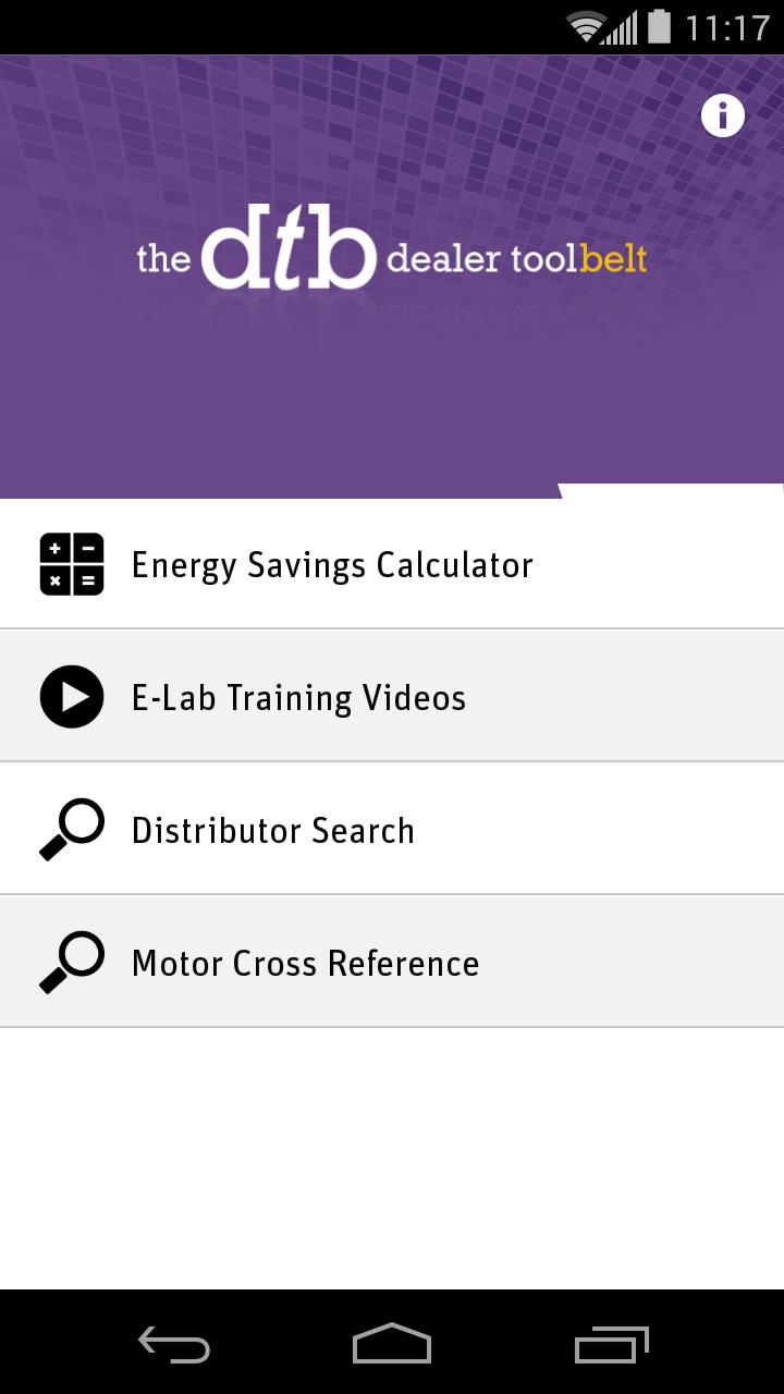 หยุดค้นหาเว็บเพื่อหาข้อมูลมอเตอร์ HVAC The Dealer Toolbelt (DTB) มอบทุกสิ่งที่คุณจำเป็นต้องรู้เกี่ยวกับมอเตอร์ Regal และEvergreen®ทั้งหมดในที่เดียว ใช้เครื่องคิดเลขประหยัดพลังงานเพื่อแสดงประโยชน์ของมอเตอร์ IM ที่เขียวชอุ่มตลอดปี หรือค้นหามอเตอร์ทดแทนที่ถูกต้องและค้นหาตัวแทนจำหน่ายที่ใกล้ที่สุดทันที ต้องการแปรงความรู้ในการติดตั้งของคุณทุกที่ทุกเวลา? ดูวิดีโอการฝึกอบรม E-LAB หากคุณกำลังมองหาข้อมูลมอเตอร์คุณจะพบได้ใน DTB เป็นเครื่องมือที่ฉลาดที่สุดในสายรัดเครื่องมือของคุณ - และทรัพยากรเพิ่มเติมกำลังจะมาเร็ว ๆ นี้