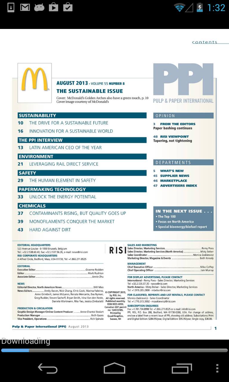 แอพนิตยสาร Pulp and Paper International (PPI) นำข้อมูลระดับโลกที่ทันสมัยเกี่ยวกับการพัฒนาธุรกิจล่าสุดเทคนิคการดำเนินงานและนวัตกรรมทางเทคนิคในอุตสาหกรรมเยื่อกระดาษและกระดาษ