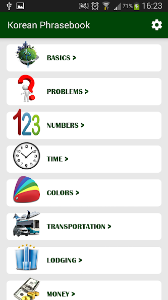 Korean phrasebook ที่มีประโยชน์มากเมื่อคุณไปเกาหลีหรือประเทศที่พูดภาษาเกาหลีอื่น ๆ ! วลีนี้มีประโยคจากหมวดหมู่ที่แตกต่างกันเช่น: