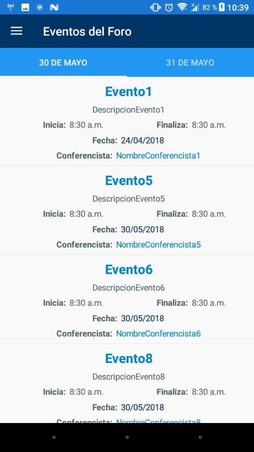 ในเวอร์ชันนี้แสดงภาพข้อมูลของฟอรัมฟังก์ชั่นสาธารณะของ XIX ในอเมริกากลางปานามาและสาธารณรัฐโดมินิกันที่จะจัดขึ้นในวันที่ 30 และ 31 พฤษภาคม 2018 ในปานามาซิตี้ ตรวจสอบเหตุการณ์เหตุการณ์เช่นวันที่และเวลาเรื่องและวิทยากร เช่นเดียวกับข้อมูลของพวกเขา