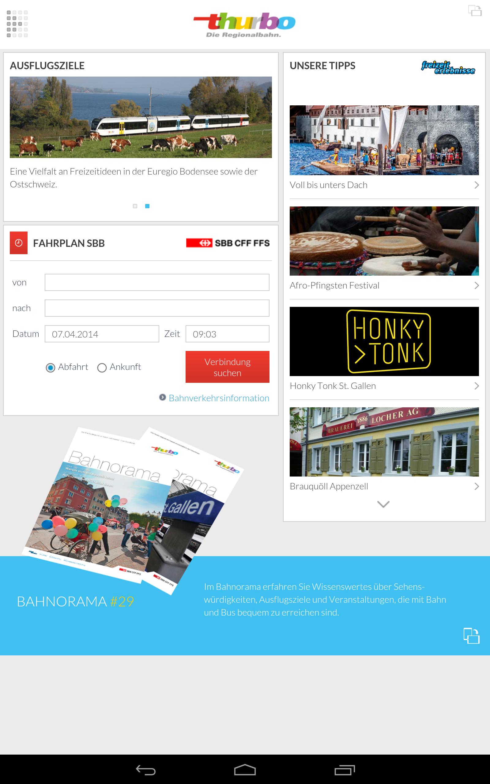 หากคุณกำลังวางแผนการท่องเที่ยวในภูมิภาคนี้แอพ Thurbo Freizeit มีนักวางแผนการพักผ่อนและคู่มือการเดินทางในมือของคุณ คู่มือทัวร์เล็ก ๆ น้อย ๆ สำหรับการเดินทางสามารถทำอะไรได้เกือบทุกอย่าง: