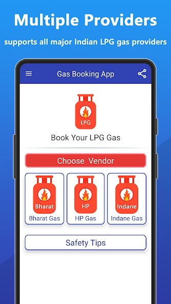แอปพลิเคชั่น all-in-one นี้รองรับผู้ให้บริการก๊าซ LPG ที่สำคัญของอินเดียเช่นก๊าซอินเทน, ก๊าซ Bharat และการจองก๊าซ HP ไม่จำเป็นต้องมีหลายแอพ - จัดการการเชื่อมต่อก๊าซ LPG ทั้งหมดของคุณอย่างราบรื่นในที่เดียว!