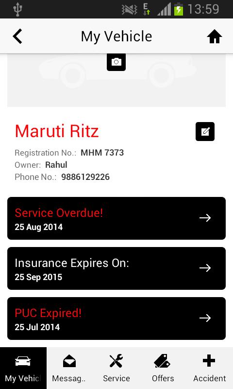 มันเชื่อมต่อคุณกับอุตสาหกรรม Chowgule และดึงรายละเอียดของรถของคุณออกมาพร้อมกับประวัติการบริการที่สมบูรณ์ มันตั้งค่าการแจ้งเตือนอัตโนมัติสำหรับการหมดอายุการประกันภัย, PUC หมดอายุและวันที่ครบกำหนดบริการ นอกจากนี้ยังได้รับการประกันและเอกสาร PUC ของคุณในโทรศัพท์ของคุณ!