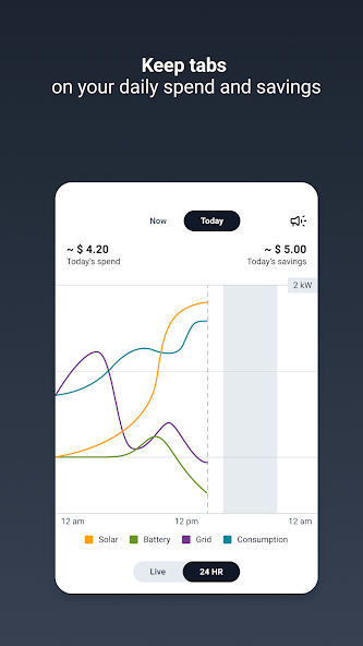 • Discover patterns in your consumption, solar generation, grid, and battery usage