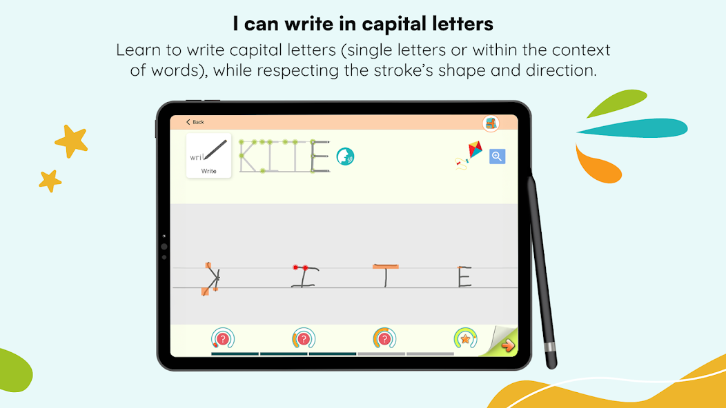 Kaligo 's exercises can be done on a tablet with or without a stylus. โหมดการสอนช่วยให้สามารถปรับแต่งเนื้อหาการเรียนการสอนและการเรียนรู้ได้ทั้งหมดและแผนการเขียนด้วยลายมือ จากแดชบอร์ดคุณสามารถติดตามความคืบหน้าของนักเรียนในเวลาจริงหรือออฟไลน์การเล่นซ้ำของนักเรียนและปรับแต่งแบบฝึกหัดตามความต้องการของพวกเขา