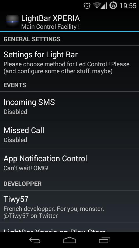 หากอุปกรณ์ Xperia ของคุณมี LED หนึ่งตัว (LEDBAR สีขาว) แอพนี้จะไม่ทำงาน