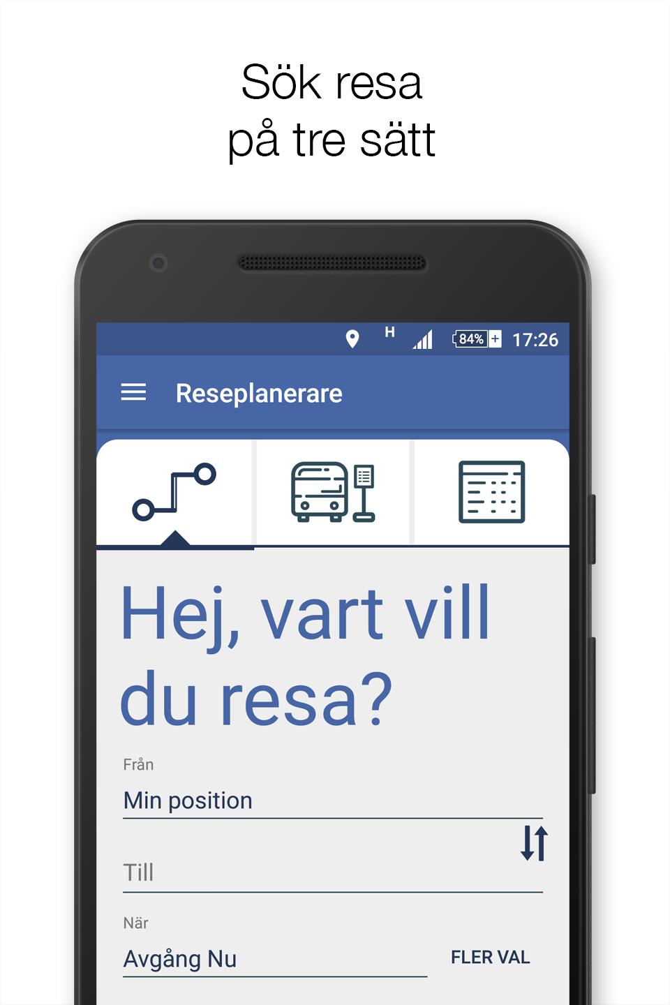 LänstrafikenVästerbottenยังให้ข้อมูลการจราจรเมื่อเดินทางนอกVästerbotten ใช้ฟังก์ชั่นการเดินทางในเขตอื่นและคุณสามารถค้นหาและซื้อการเดินทางในส่วนใหญ่ของสวีเดน - แอพสำหรับ 83% ของสวีเดน