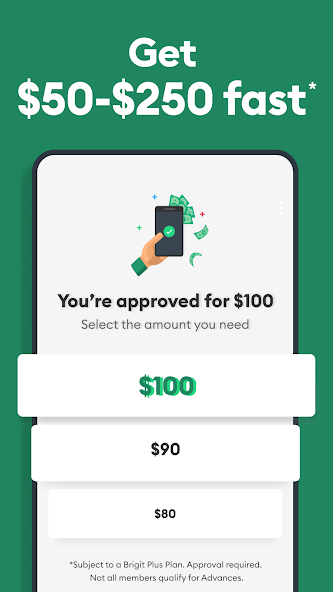 ผู้ใช้ทุกคนจะไม่ผ่านเข้ารอบ ขึ้นอยู่กับการได้รับการอนุมัติและนโยบายของ Brigit ความก้าวหน้ามีตั้งแต่ $ 50 - $ 250 ไม่สามารถใช้ได้ในทุกรัฐ ค่าธรรมเนียมการโอนด่วน (ทันที) อาจใช้สำหรับการชำระบัตรเดบิต ความก้าวหน้าไม่มีระยะเวลาการชำระคืนขั้นต่ำหรือระยะเวลาการชำระคืนสูงสุด เงินขั้นสูงมีดอกเบี้ยสูงสุด 0% ตัวอย่าง $ 100 เงินสดล่วงหน้า: ส่งผ่าน ACH & ชำระคืนในวันที่คุณตั้งค่าด้วยดอกเบี้ย 0%, ค่าธรรมเนียมการกำเนิด $ 0, ค่าธรรมเนียมการประมวลผล $ 0, ค่าธรรมเนียมการโอน $ 0 ที่เกี่ยวข้องกับเงินล่วงหน้า ค่าใช้จ่ายทั้งหมด: $ 100