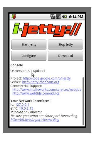 i-jetty เป็นพอร์ตของเว็บคอนเทนเนอร์โอเพ่นซอร์สยอดนิยมสำหรับแพลตฟอร์มมือถือ Android ตัวอย่างเว็บแอปพลิเคชันรวมอยู่ในเนื้อหาที่ให้บริการบนโทรศัพท์เช่นผู้ติดต่อรูปภาพและเพลงไปยังเบราว์เซอร์เดสก์ท็อปใด ๆ ชื่อคือปุนใน "ฉันหุ่นยนต์"