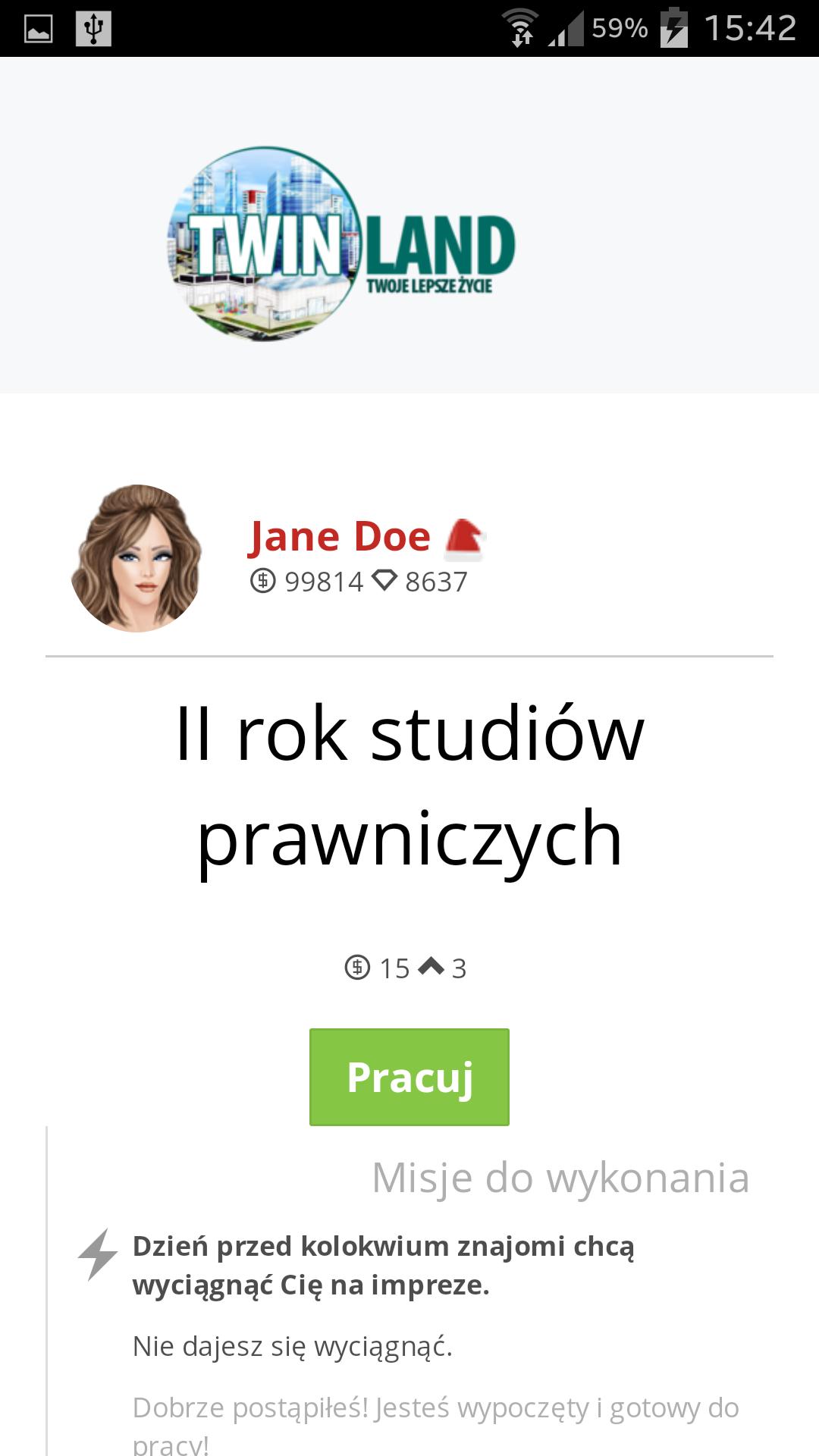 Twin.land เป็นเกมโซเชียลที่มีธีมคือ ... ชีวิต เล่นชายสีเทาและนอนหลับบนบันไดอาชีพ ดูแลความต้องการของตัวละครของคุณและพบปะเพื่อนใหม่ มันง่ายยิ่งขึ้นด้วยแอปพลิเคชันอย่างเป็นทางการ! 1.4.1