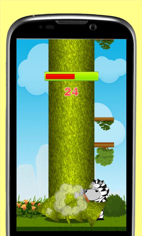 เขาโจมตีบนต้นไม้และทุบไม้ ม้าลายตีต้นไม้ทีละคนแล้วทุบเป็นชิ้น ๆ ม้าลายโจมตีส่วนที่ต่ำที่สุดและชนเป็นชิ้น ๆ จากนั้นไม้ตอนบนก็ตกลงมาและเธอก็ตีอีกครั้งและทุบด้วยเช่นกัน เกมนี้ยังคงดำเนินต่อไปเช่นนี้