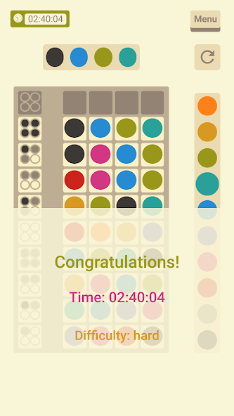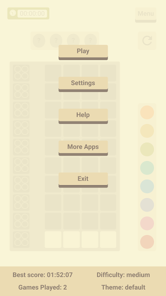 มันเป็นเกมเบรกเกอร์โค้ดคลาสสิกสำหรับผู้เล่นสองคน ผู้เล่นคนหนึ่งคือ Codemaker และอีกอันคือ Codebreaker ในคอมพิวเตอร์เกมนี้เป็นผู้สร้าง Codemaker และคุณเป็น Codebreaker คอมพิวเตอร์จะสร้างลำดับสีแบบสุ่มและเป้าหมายของคุณคือการคาดเดาว่าลำดับสีลับเร็วที่สุดเท่าที่จะทำได้ เมื่อใดก็ตามที่คุณคาดเดาในคอมพิวเตอร์บอร์ดจะให้คำแนะนำเกี่ยวกับการเดาของคุณว่าจะช่วยคุณในการคาดเดารหัสสีลับ คำแนะนำเหล่านั้นจะเป็น: