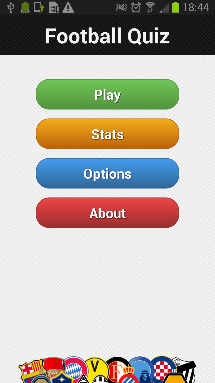 นี่คือเกมตอบคำถามที่คุณต้องเดาโลโก้ของสโมสรฟุตบอลที่แตกต่างกันเราสามารถเห็นโลโก้สโมสรฟุตบอลต่างๆทุกวัน: คุณรู้จักโลโก้กี่รายการ? ตลอดทั้งเกมคุณจะได้รับการนำเสนอด้วยแพ็คระดับที่แตกต่างกันแต่ละอันมีโลโก้ของสโมสรฟุตบอลต่างๆ