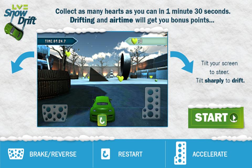 มันไม่ได้เป็นเพียงแค่ความเร็วในการรวบรวมหัวใจให้ได้มากที่สุดเท่าที่จะเป็นไปได้: คุณจะได้คะแนนคะแนนสำหรับความยาวและเวลาออกอากาศ! ดังนั้นอย่าลืมรวบรวมหัวใจของคุณด้วยสไตล์ให้มากที่สุด เมื่อคุณเชี่ยวชาญเทคนิคการขับขี่ของคุณและเพิ่มคะแนนสูงสุดให้แบ่งปันความสำเร็จของคุณกับเพื่อนของคุณและดูว่าพวกเขามีสิ่งที่จะเอาชนะคุณในฐานะ LV = SnowDrift Master!