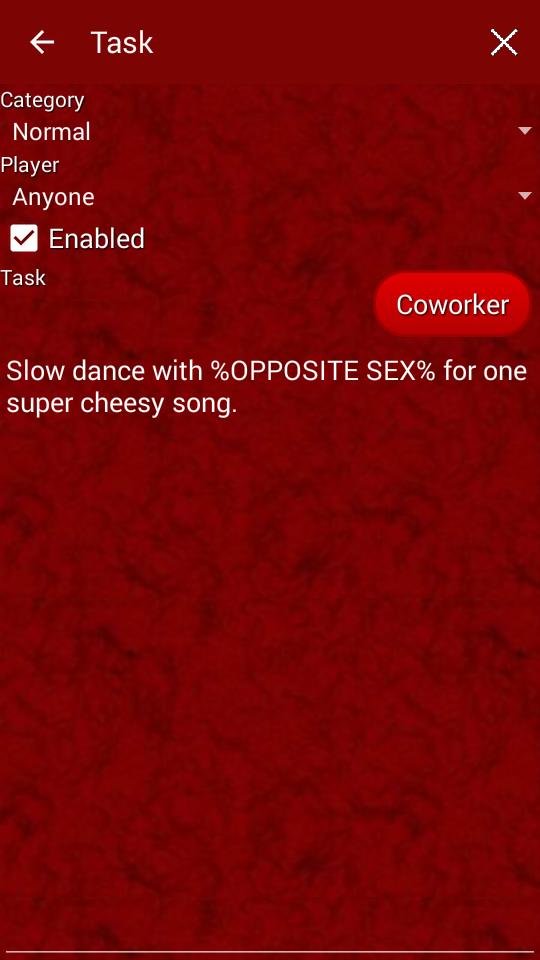 เกม Party Wheel นั้นปลอดภัยที่จะเล่นโดยทั้งวัยรุ่นและผู้ใหญ่ มันมี 12 หมวดหมู่ที่กำหนดไว้ล่วงหน้า