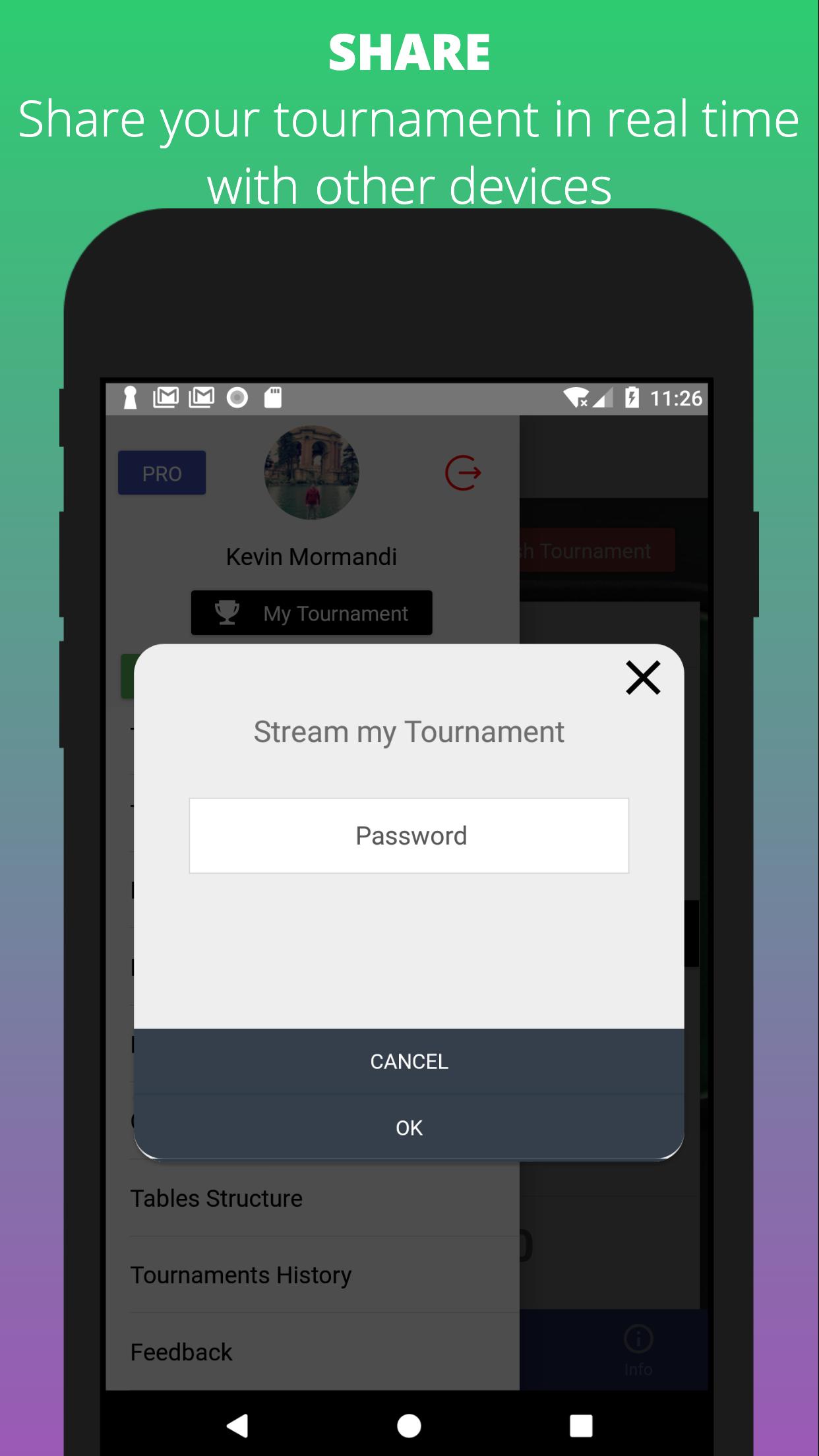 คุณสามารถสตรีมทัวร์นาเมนต์ของคุณไปยังอุปกรณ์อื่น ๆ ได้ดังนั้นอุปกรณ์หลายตัวจะสามารถจัดการการแข่งขันในเรียลไทม์และการแข่งขันสามารถสะท้อนได้ในอุปกรณ์อื่น ๆ แบบเรียลไทม์