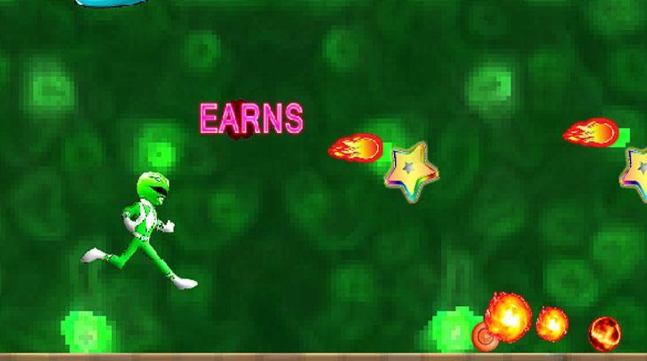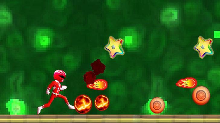 เกม Power Fight Rangers War แตะหน้าจอเพื่อกระโดดและยิง ถือให้กระโดดขึ้นด้วย