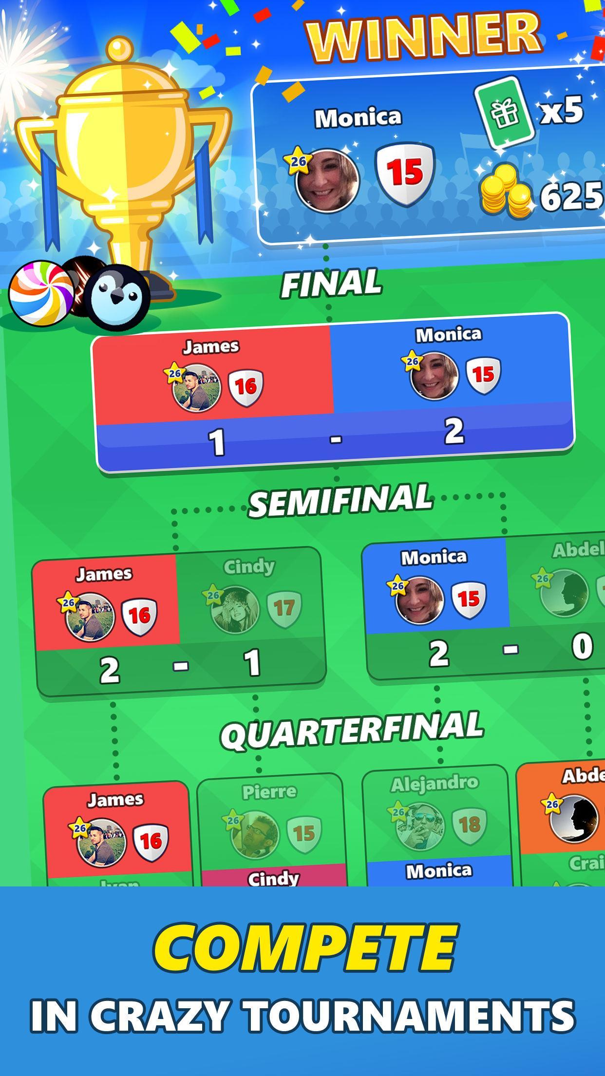เล่น 1v1, 2v2 และ 4-player matches สัมผัสกับละครของทัวร์นาเมนต์ที่น่าพิศวงผู้เล่น 8 คน ทุกชั่วโมงต่อชั่วโมงมีส่วนร่วมในทัวร์นาเมนต์พิเศษสำหรับโลก
