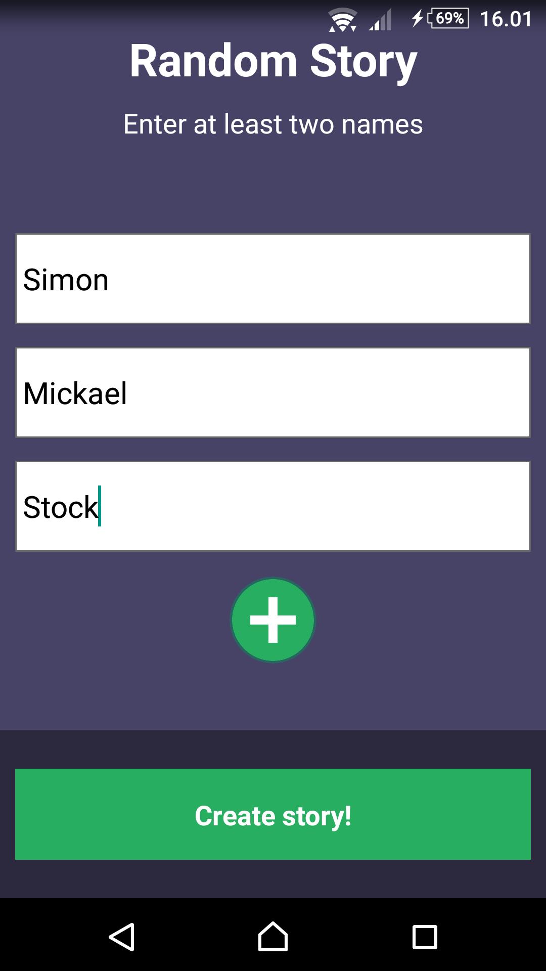 เพียงแค่ป้อนชื่อสองสามชื่อและคลิกปุ่มคุณจะได้รับเรื่องราวแบบสุ่มสำหรับคุณและเพื่อนของคุณง่ายๆ! คุณยังสามารถฟังเสียงที่อ่านเรื่องราวของคุณหรือทำไมไม่แบ่งปันเรื่องราวกับคนอื่น?
