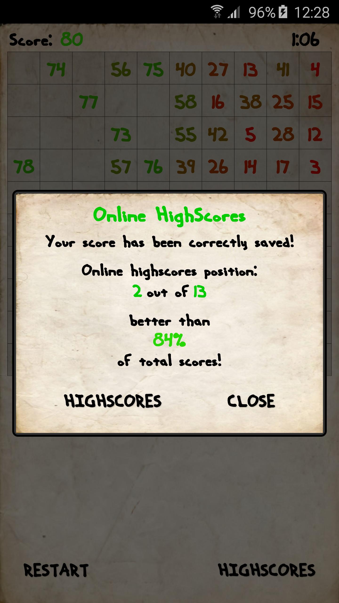 คะแนนของคุณถูกส่งไปยัง Highscores ออนไลน์ทั่วโลกซึ่งคุณสามารถเปรียบเทียบกับผลลัพธ์ของผู้คนจากทั่วทุกมุมโลก