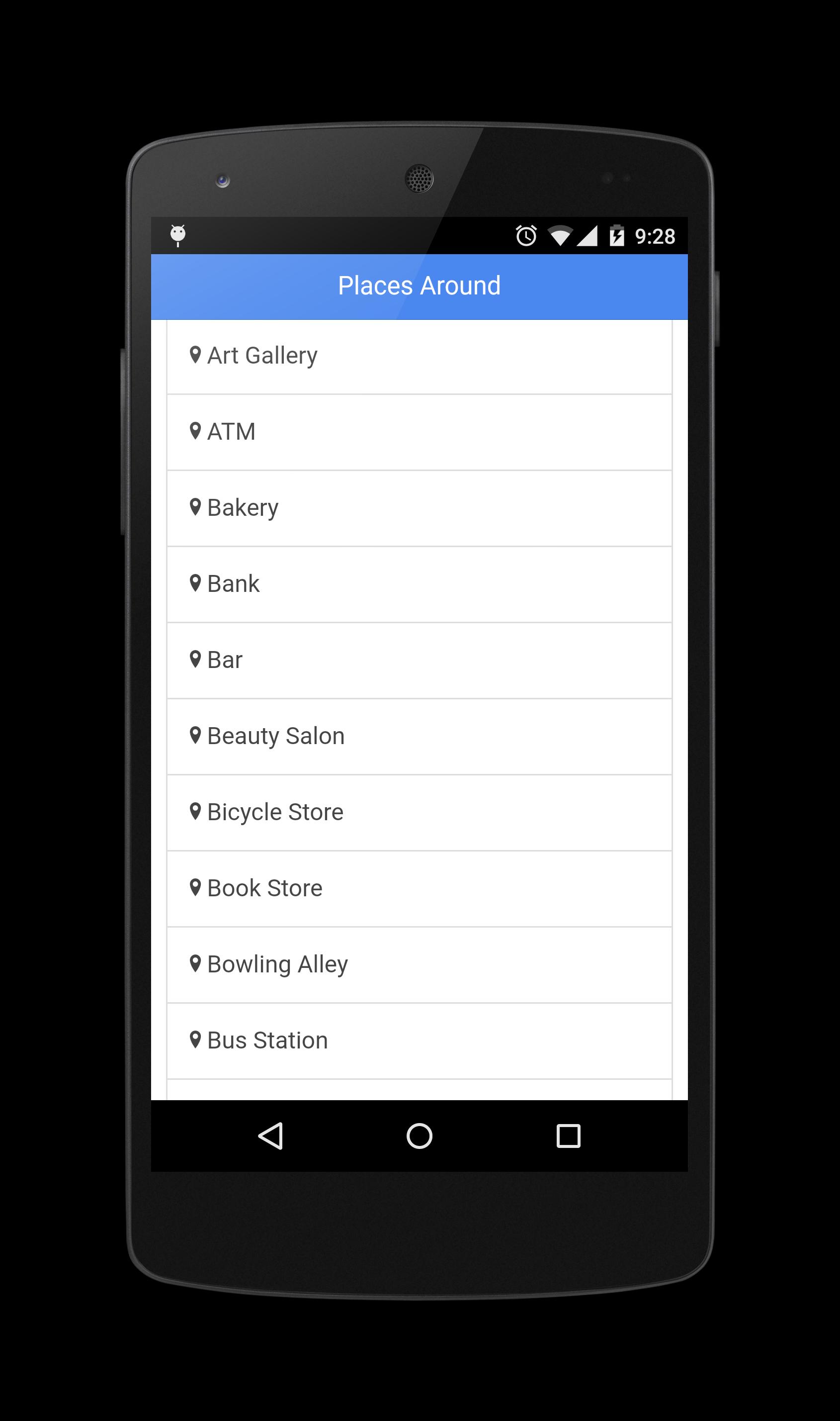 该应用程序可以帮助您轻松找到附近的地方,例如ATM,汽油,出租车,博物馆,医院,超市,图书馆,机场,咖啡店,银行,地铁,公共汽车。