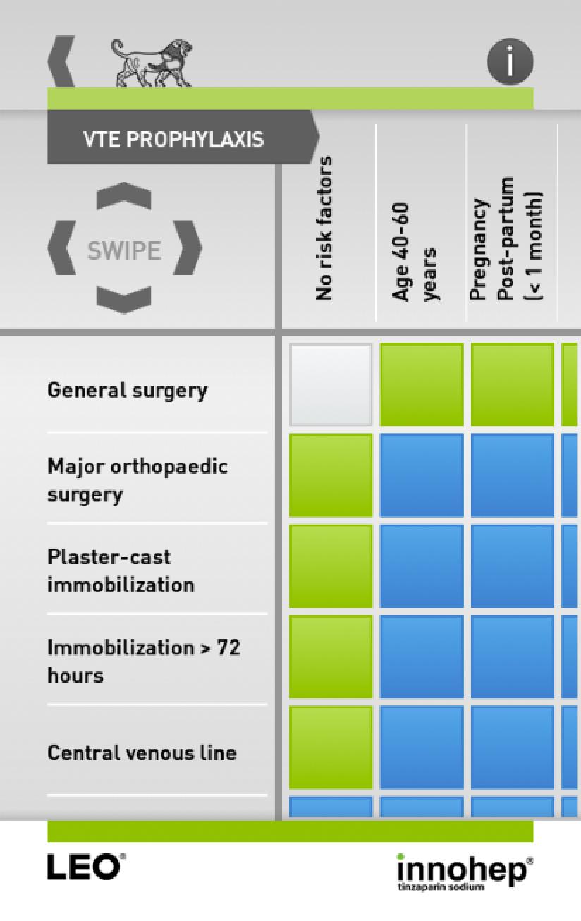 该应用程序指导您剂量的Innohep®用于VTE / PE预防和治疗