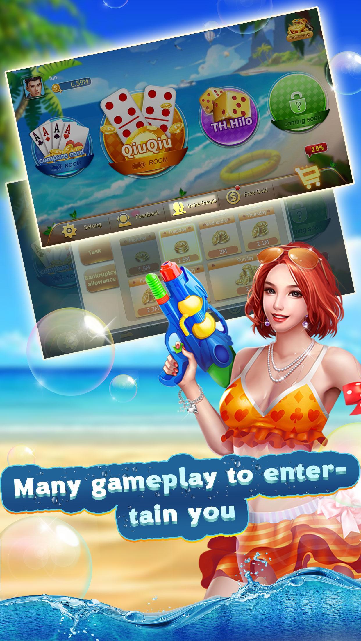 《 Comparing Card 》,也称为《 adu kartu》是东南亚的流行扑克卡游戏。它很容易玩,但也可以测试您的技能。一遍又一遍地与朋友一起玩很有趣。我们的《 Comparing Card可以免费玩,并为您提供很多硬币奖励,您可以免费获得美好的时光。除了Comparing Card外,还可以尝试我们的本地纸牌游戏,例如Domino 99 / Domino Qiu Qiu,Domino Gaple,Sic Bo,Dice等。邀请您的Facebook朋友并一起玩,以获得更多有趣而愉快的体验。立即下载!