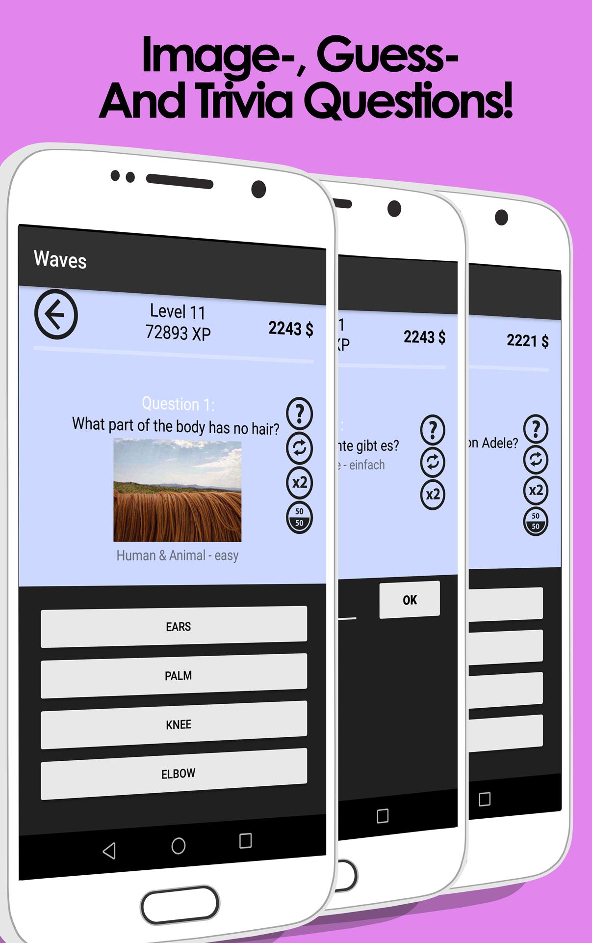 每个人都知道50/50的小丑。该测验使您可以解锁更多的开玩笑,这将帮助您回答问题,第二次尝试,将时间添加时间或切换问题。此外,升级将有助于赚取更多的钱和经验,或者在给出错误的答案后允许您复活。变得富有并购买任何东西可以帮助您变得更聪明!这样回答猜测和图片问题可能会容易得多!没有其他免费的常识测验在2019年提供如此多样性!