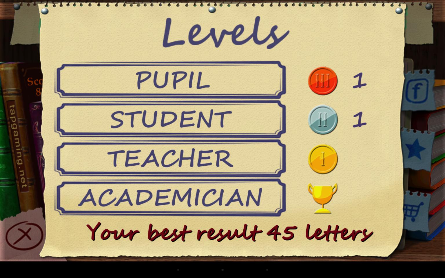 撰写一个字母集的单词(单数名词)。在此,只有一个字母应在一列中使用,并且读取的字母顺序仅是从左到右。它可以跳过任何数量的列来制作单词。在字典中找不到的单词将在游戏中不计数。如果您确定存在此词,则可以将其发送给我们以进行审查。应该在一个阶段写十个单词。随着更高的复杂性,使用10个单词的使用字母的总数增加。