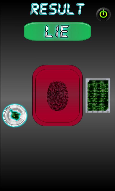 当模拟扫描开始时,射线会扫描您朋友的指纹。自定义绘制精美的动画有助于使恶作剧。首先 - 将手指放在扫描仪面板上,然后在激光扫描指纹时等待,如果分析完成时,探测器将为您的朋友说出真相或他们在撒谎而为答案提供答案。