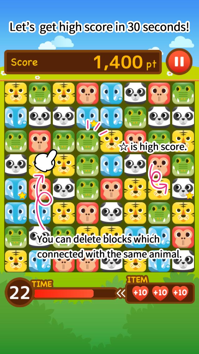 PuZoo是基于“同一游戏”游戏系统的简单动物益智游戏。点击很多动物,以在30秒内获得高分!